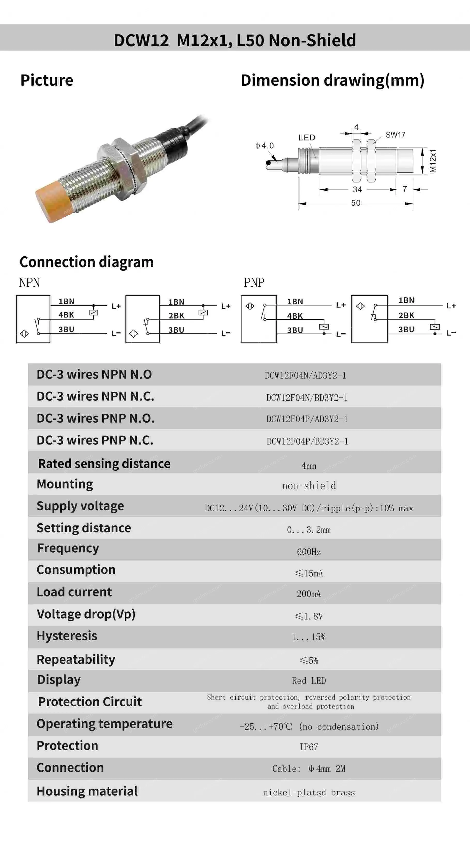 • DCW12F04P/AD3Y2-1 PNP N.O. DC12-24V